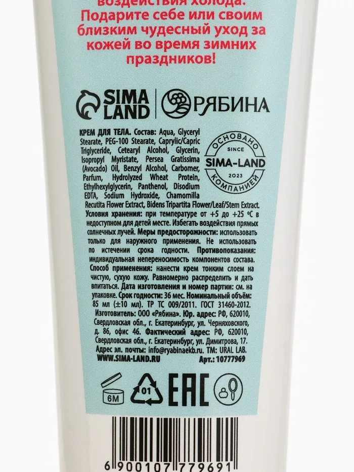 Крем для тела «Снежная сказка», восстановление и защита, 85 мл, URAL LAB