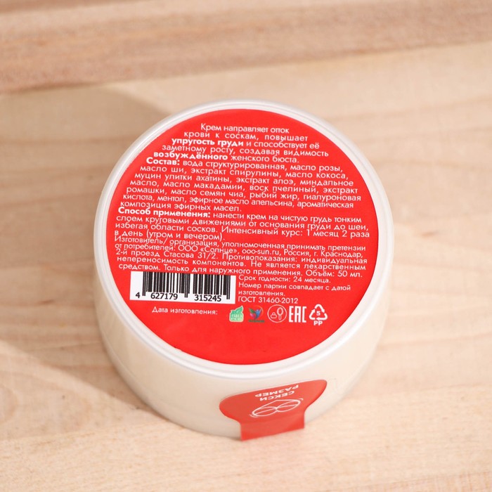 Крем воздействует на большое количество рецепторов, способствуя быстрому увеличению и сохранению упругости, объёма груди.
