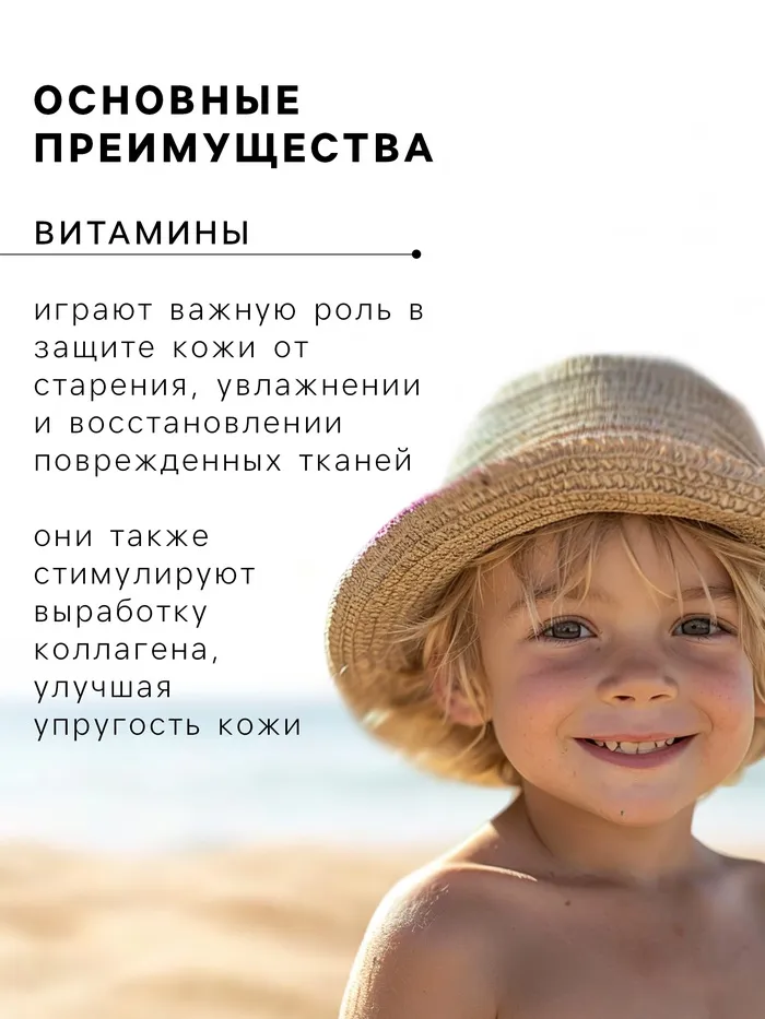 - SPF 30 защищает нежную кожу ребёнка от ультрафиолетовых лучей, снижая риск ожогов.