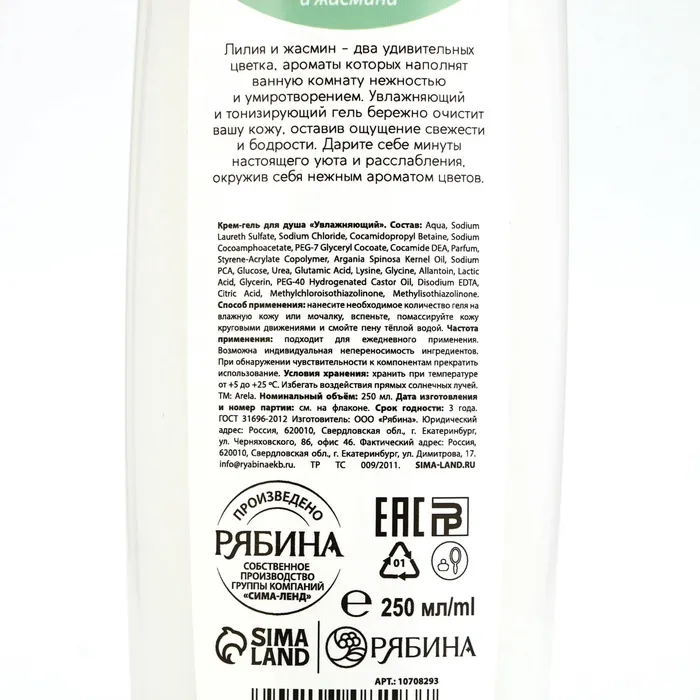 Крем-гель для душа ARELA, 250 мл, аромат лилии и жасмина — Характеристики