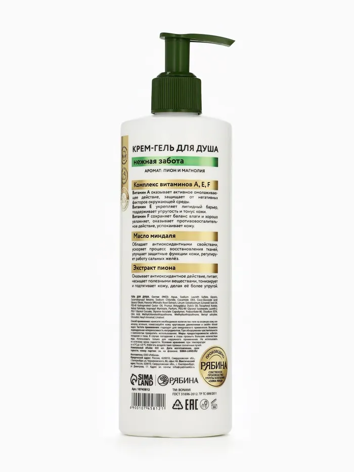 Крем-гель для душа женский «Пион и магнолия», 400 мл, BONAMI — Характеристики