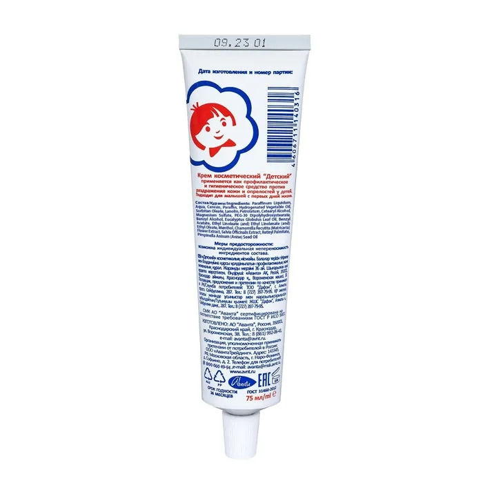 Крем косметический "ДЕТСКИЙ" с витаминами и экстрактом ромашки, 75 мл — Характеристики