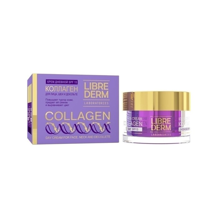 Этот дневной крем создан для сохранения и защиты коллагеновой сети и внеклеточного матрикса. За счет уникальной молекулы-биомиметик средство оказывает мощный антивозрастной эффект и сокращает число глубоких морщин. Вместе с коллаген-эластиновым комплексом активные ингредиенты продлевают увлажняющее действие, восстанавливают упругость и эластичность кожи и избавляют от морщин. К тому же, в составе имеются солнцезащитные фильтры SPF15, которые защищают от преждевременного старения. Мощный антиоксидант - витамин Е - разглаживает морщины вокруг глаз. Средство не сушит и не раздражает кожу. В составе отсутствуют красители и парабены. Благодаря обволакивающей текстуре крем не оставляет жирного блеска и быстро впитывается. Использовать его можно в качестве самостоятельного средства, или вместе с лифтинг-сывороткой Коллаген «Моментальный эффект» от ТМ Librederm. Для лучшего результата рекомендуется использовать ночной крем Коллаген. СПОСОБ ПРИМЕНЕНИЯ: нанести крем на кожу лица, шеи и области декольте по массажным линиям, затем легкими постукивающими движениями подушечек пальцев помочь крему полностью впитаться.