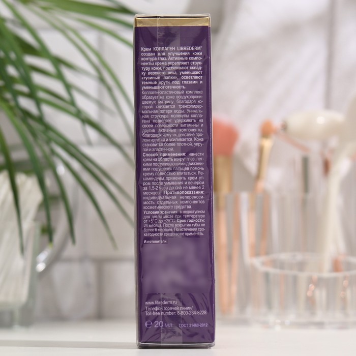 Омолаживающий крем для кожи вокруг глаз КОЛЛАГЕН специально создан для антивозрастного ухода за тонкой кожей век. Коллаген-эластиновый комплекс разглаживает морщины, восстанавливает эластичность нежной кожи вокруг глаз и увлажняет ее. Экстракты Персидского дерева и Сигезбекии восточной, дополняя работу комплекса, подтягивают складку верхнего века, разглаживают гусиные лапки, улучшают микроциркуляцию кожи и способствуют уменьшению отечности. Витамин Е и масло рыжика защищают кожу от действия свободных радикалов, смягчают ее, стимулируют клеточный обмен и повышают тонус кожи. Результат - молодой, распахнутый взгляд, сияющий молодостью! Способ применения: легкими прикосновениями нанести небольшое количество крема на кожу вокруг глаз, затем мягкими постукивающими движениями подушечек пальцев помочь крему полностью впитаться. Рекомендуется использовать утром и вечером.