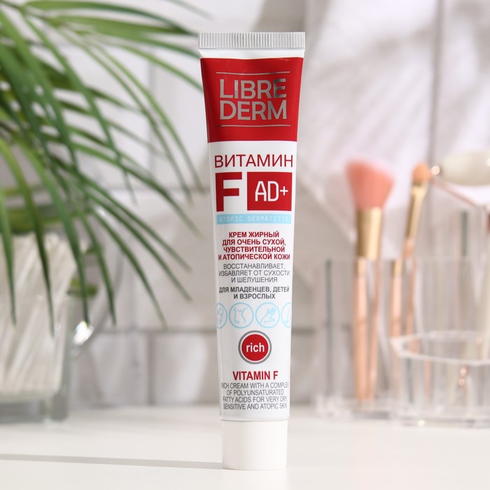 Крем Librederm Витамин F "Жирный" с комплексом полиненасыщенных жирных кислот предназначен для нормализации очень сухой, чувствительной и атопичной кожи взрослых и детей с первых дней жизни 0+.