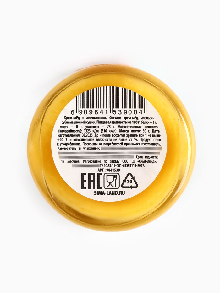 Состав: крем-мёд, апельсин сублимационной сушки.