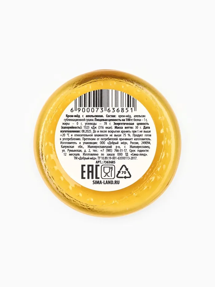 Состав: крем-мёд, апельсин сублимационной сушки.