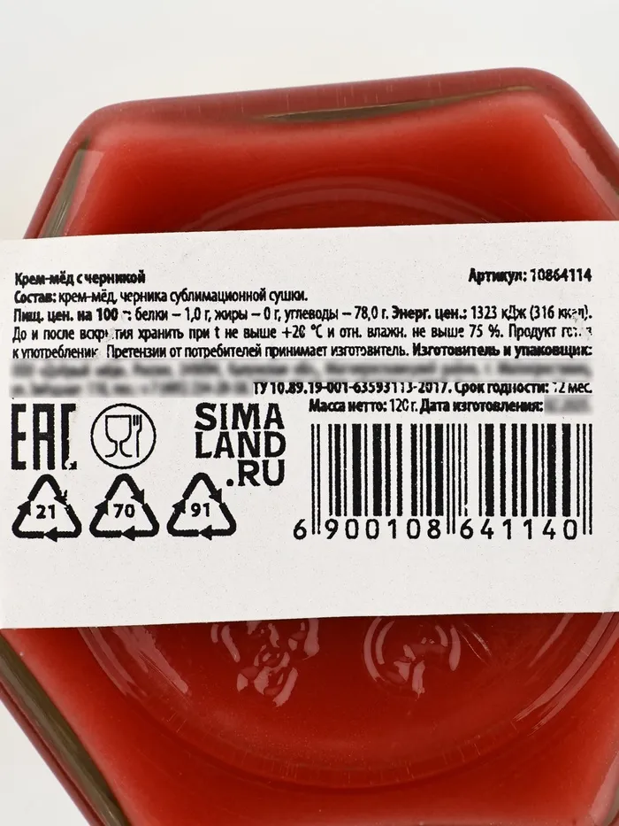 Крем-мёд «Расцветай», с черникой, 120 г — Характеристики