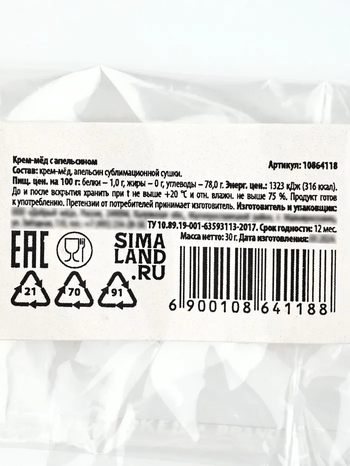 Состав: крем-мёд, апельсин сублимационной сушки.