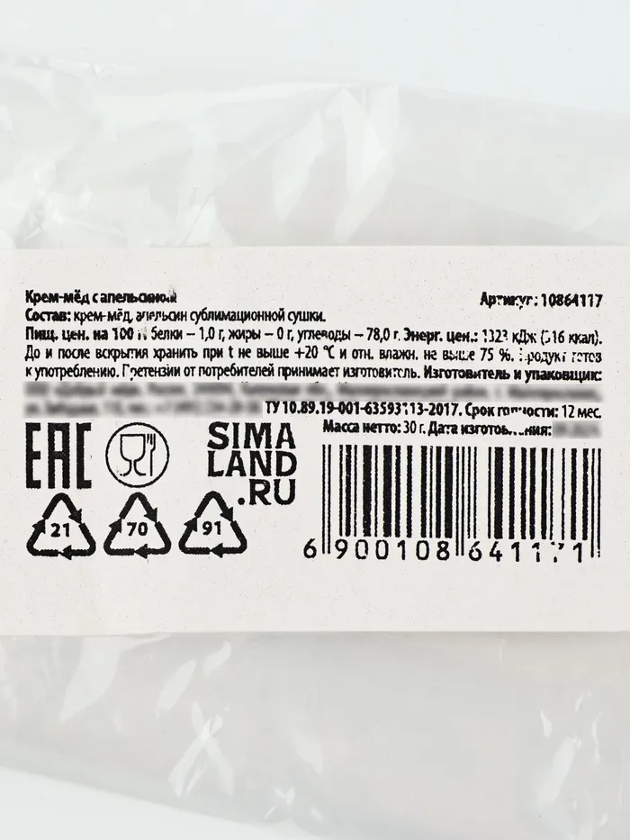 Состав: крем-мёд, апельсин сублимационной сушки.