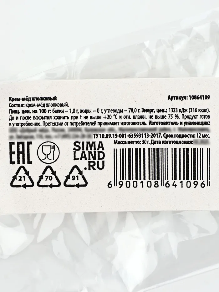 Крем-мёд «Самой яркой», с хлопком, 30 г — Характеристики
