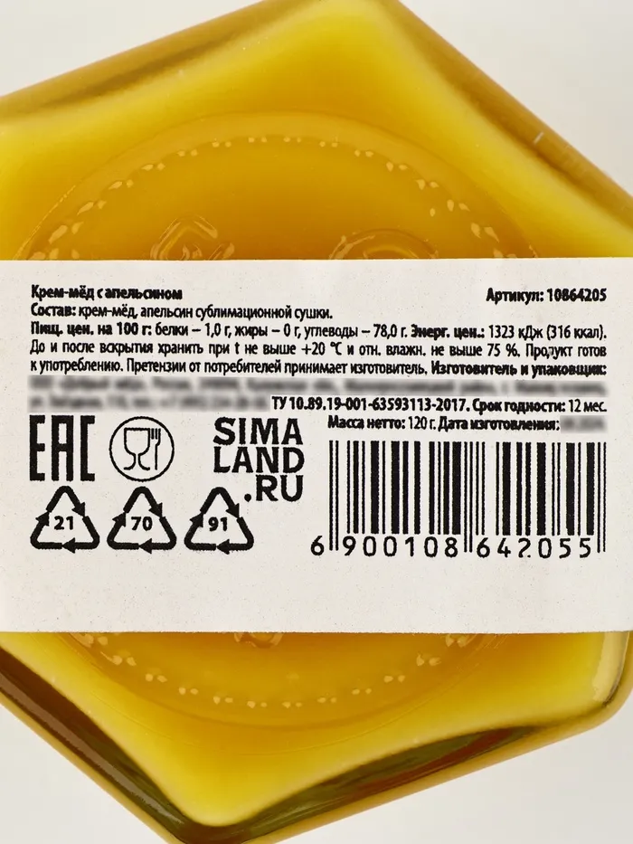 Состав: крем-мёд, апельсин сублимационной сушки.