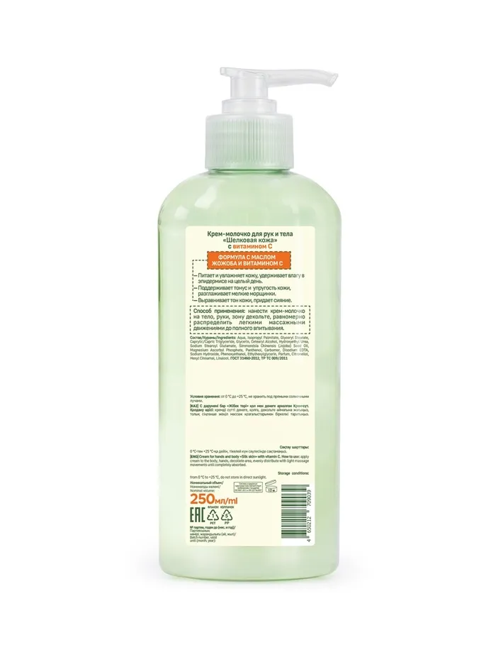Крем-молочко специально создано для ухода за кожей рук и тела в помощь для создания лучшей версии себя - с мягкой увлажненной, сияющей, шелковой кожей.
