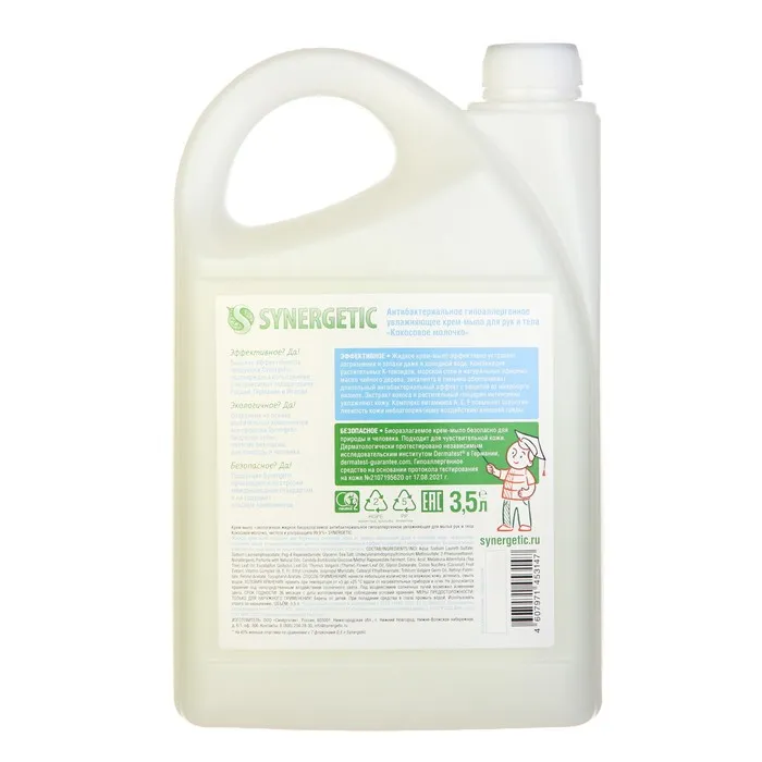 Крем-мыло Synergetic "Кокосовое молочко", антибактериальное, 3,5 л — Характеристики
