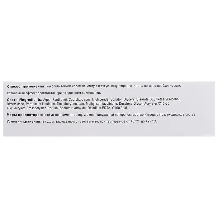 Д-пантенол, входящий состав, интенсивно увлажняет, смягчает и успокаивает чувствительную, раздраженную кожу, устраняя сухость и шелушение, способствует ускорению процессов регенерации, помогая быстро восстановить естественный защитный барьер кожи.