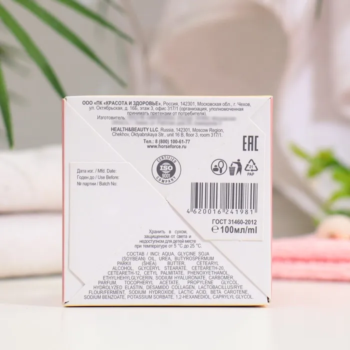 Состав: AQUA, GLYCINE SOJA (SOYBEAN) OIL, UREA, BUTYROSPERMUM PARKII (SHEA) BUTTER, CETEARYL ALCOHOL, GLYCERYL STEARATE, CETEARETH-20, CETEARETH-12, CETYL PALMITATE, PHENOXYETHANOL, ETHYLHEHYLGLYCERIN, SODIUM HYALURONATE, CARBOMER, PARFUM, TOCOPHERYL ACETATE, PROPYLENE GLYCOL, HYDROLYZED ELASTIN, DESAMIDO COLLAGEN, LACTOBACILLUS/RYE FLOUR/FERMENT, SODIUM HYDROXIDE, LACTIC ACID, BETA CAROTENE, SODIUM BENZOATE, POTASSIUM SORBATE, 1,2-HEXANEDIOL, CAPRYLYL GLYCOL.
