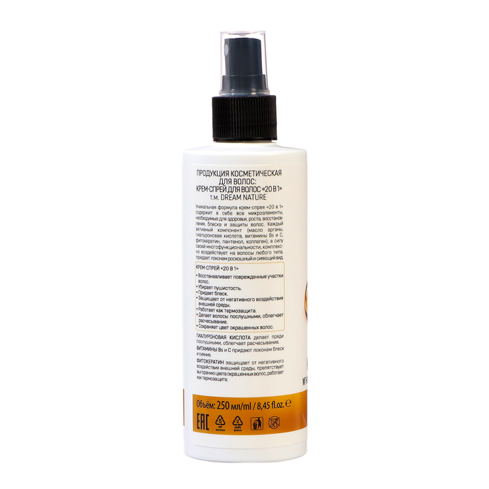 Крем-спрей для волос «20 в 1» Dream Nature Spa Care — это уникальное средство, которое содержит все необходимые микроэлементы для здоровья, роста, восстановления, блеска и защиты волос.
