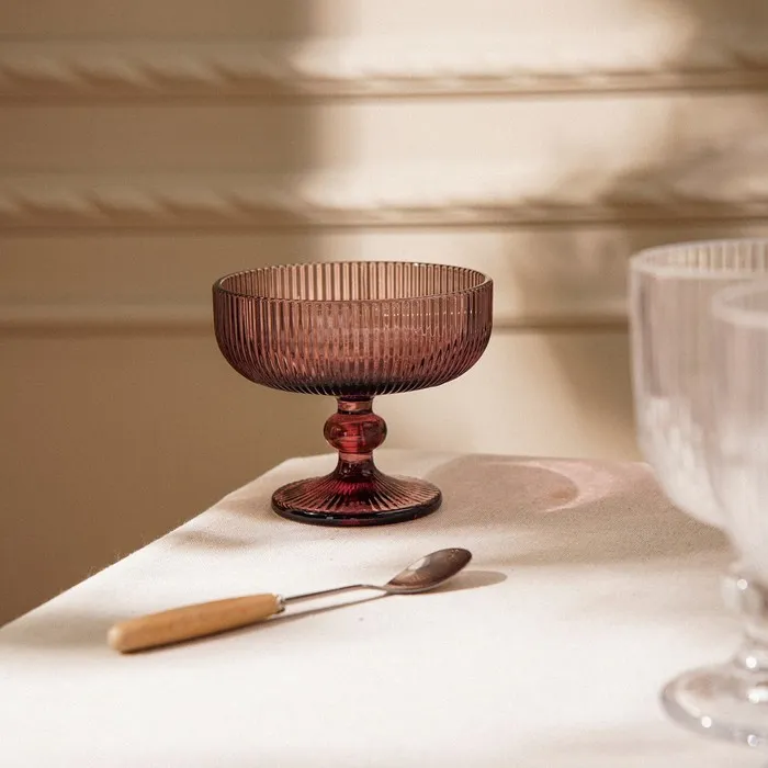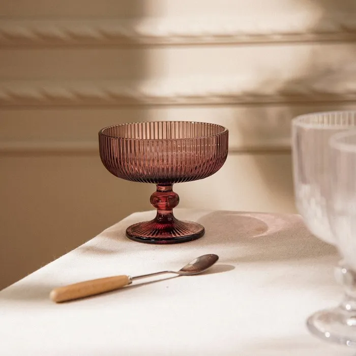 - Изысканный дизайн: нежный розовый цвет и рельефная текстура делают креманку стильным элементом сервировки стола;
