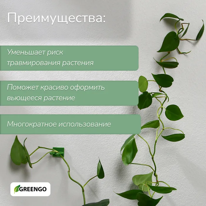 - Поддержка для растений. Каждое крепление предоставляет надёжную поддержку для вьющихся растений, помогая им расти вертикально и выглядеть красиво и ухоженно.
