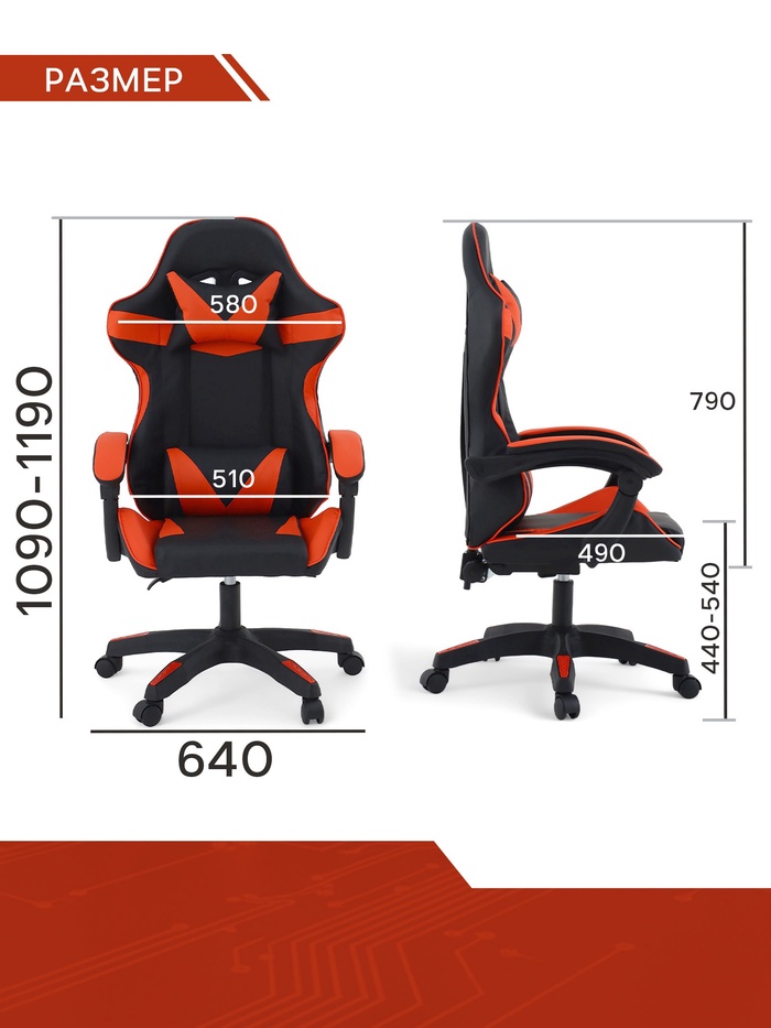 Кресло компьютерное игровое «Клик Мебель», на колёсиках, экокожа, цвет чёрный/красный — Характеристики