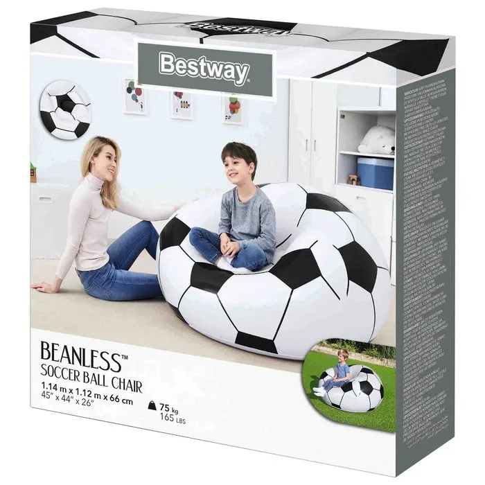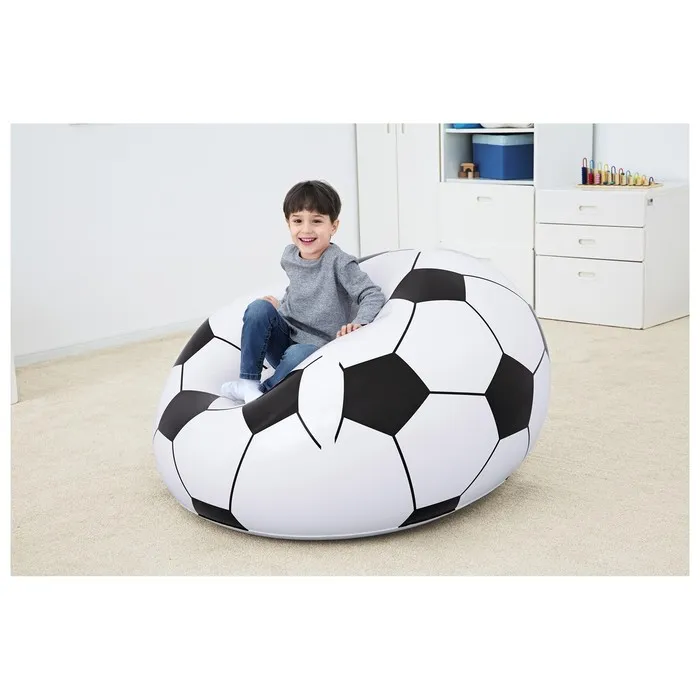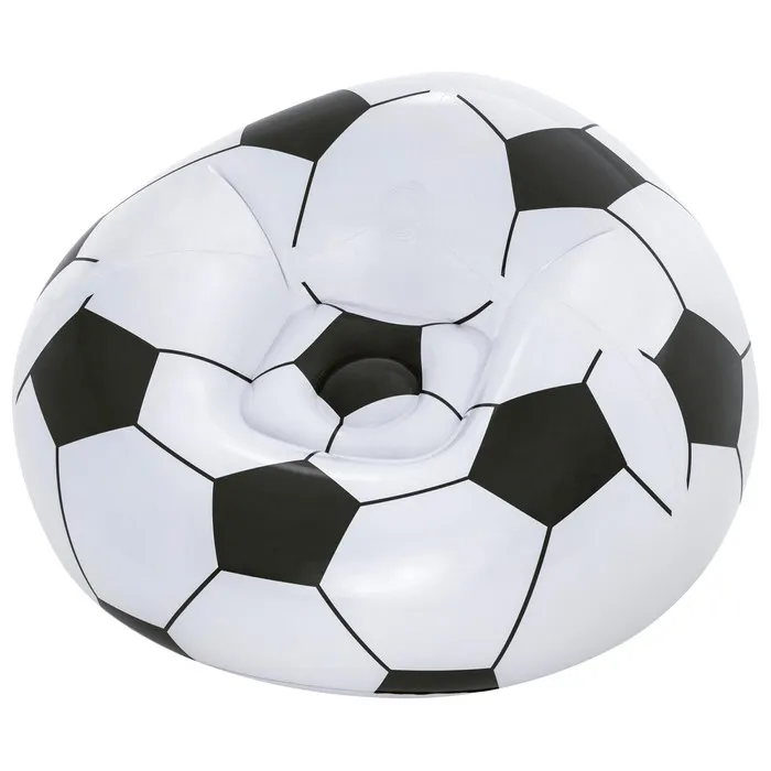 Мягкое надувное кресло в форме футбольного мяча заменит вам классический предмет мебели в квартире. Также его можно разместить во дворе и отдыхать на нём в жаркий летний день. Возьмите кресло с собой на пикник, и ребёнок будет загорать и наслаждаться свежим воздухом.