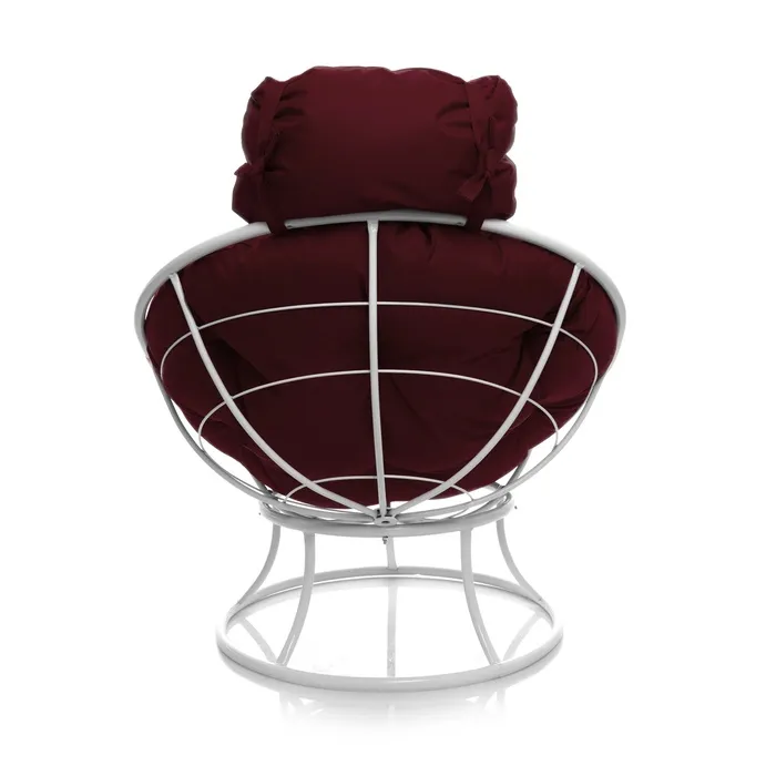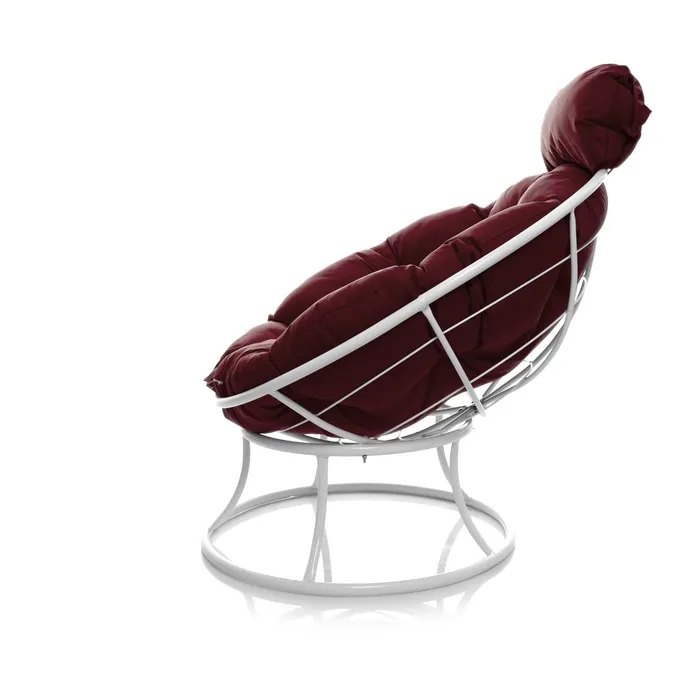 Кресло ПАПАСАН мини без ротанга белое, бордовая подушка, шт