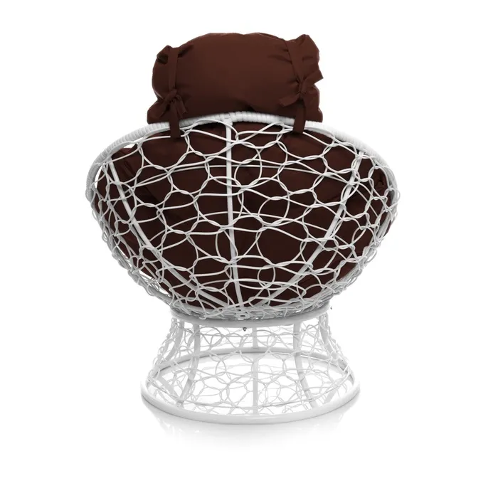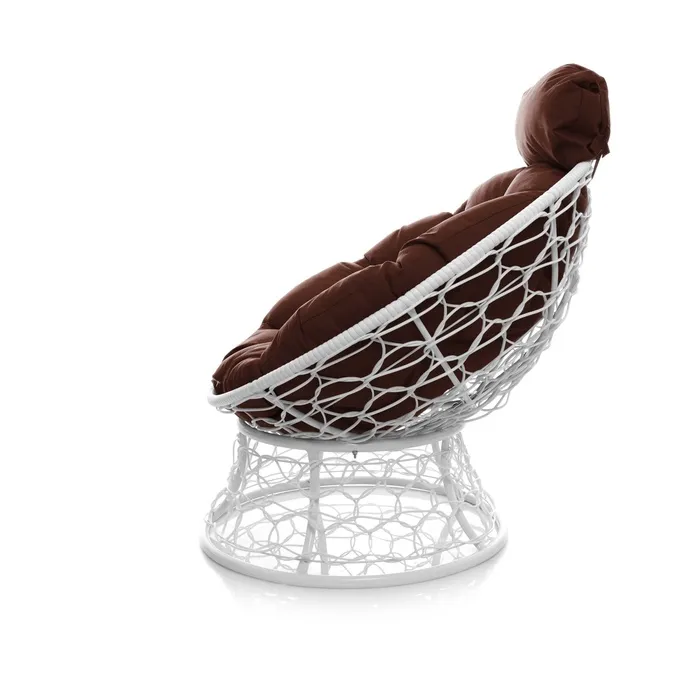 Кресло ПАПАСАН мини с ротангом белое, коричневая подушка, шт