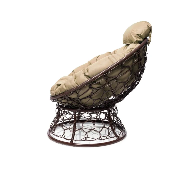 Кресло ПАПАСАН мини с ротангом коричневое, бежевая подушка, шт