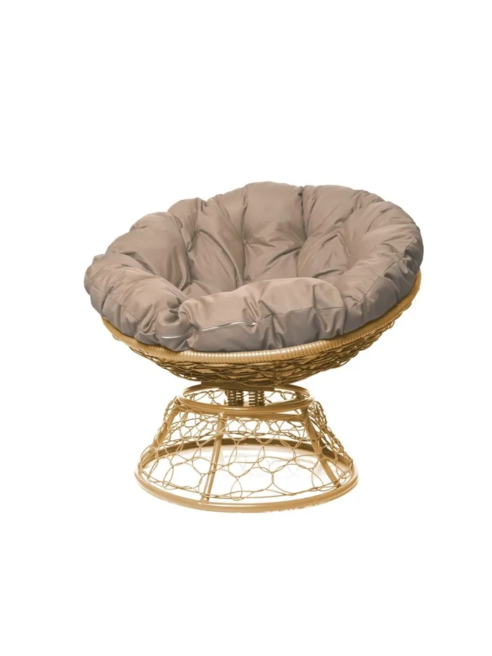 Кресло «Папасан» с искусственным ротангом, 96×98×81 см, коричневое, бежевая подушка, с механизмом качания — Характеристики