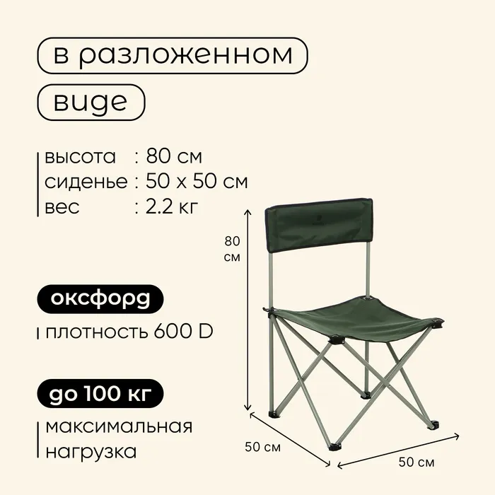 Кресло складное, 50 х 50 х 80 см, до 100 кг, цвет зелёный — Характеристики