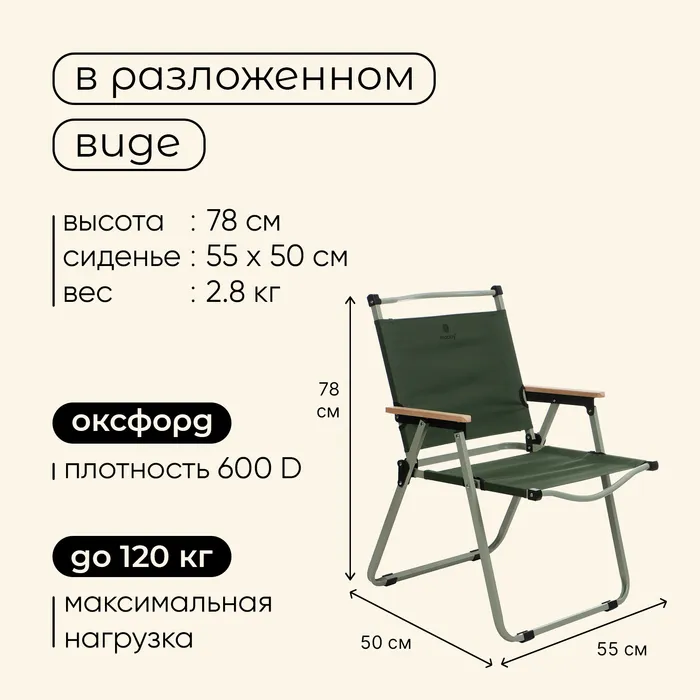 Кресло складное maclay, 55×50×78 см, до 120 кг, зелёное — Характеристики