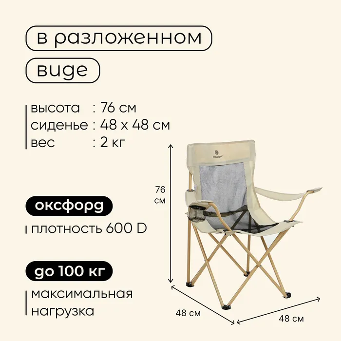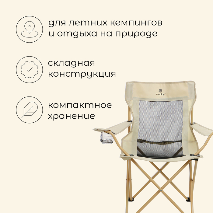 Кресло складное maclay, с подстаканником, 48 х 48 х 76 см, до 100 кг, цвет бежевый — Характеристики