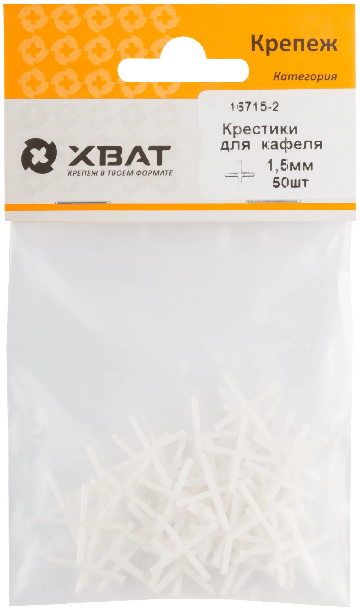 Крестики XВАТ 1,5 мм — незаменимый помощник при укладке кафеля, позволяющий создать идеальные швы между плитками. Благодаря фасовке в 50 штук, они отлично подойдут как для небольших ремонтных работ, так и для более крупных проектов.