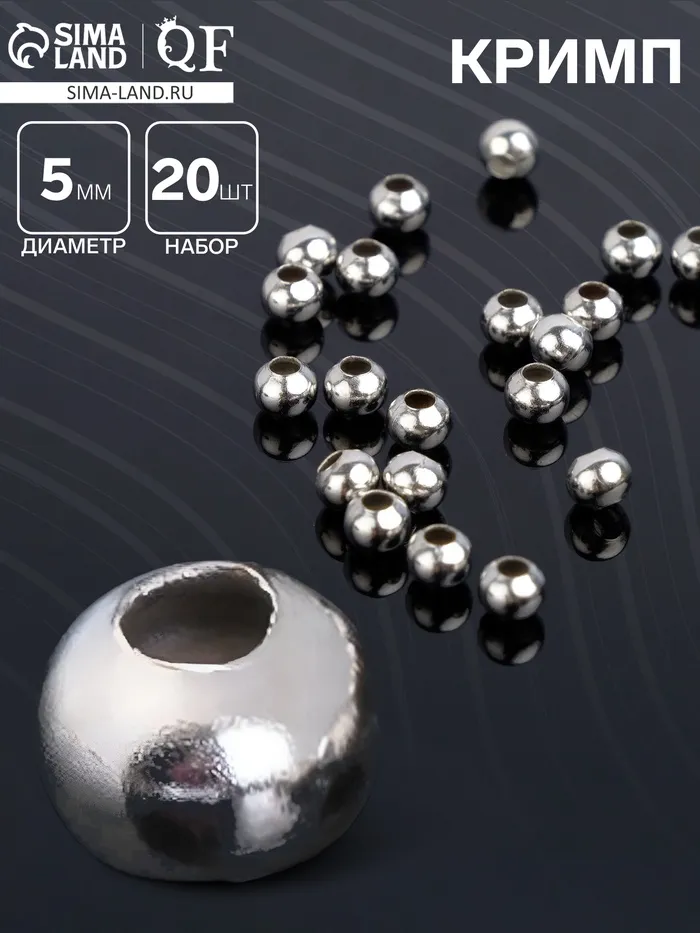 Кримп (зажимная бусина) СМ-372 (набор 20 шт.), 5 мм, цвет серебро — Характеристики