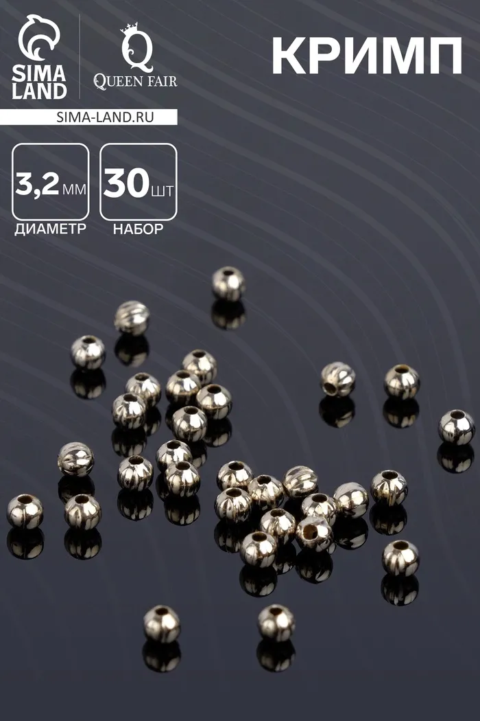 Кримп (зажимная бусина) СМ-379, 3,2 мм (набор 30 шт), цвет серебро — это идеальный аксессуар для надёжной фиксации элементов в ваших украшениях и рукодельных проектах. Эти зажимные бусины предназначены для работы с нитями, шнурами или проволокой, обеспечивая прочное соединение и предотвращая скольжение материалов. Размер 3,2 мм делает их универсальными и подходит для множества рукодельных проектов.