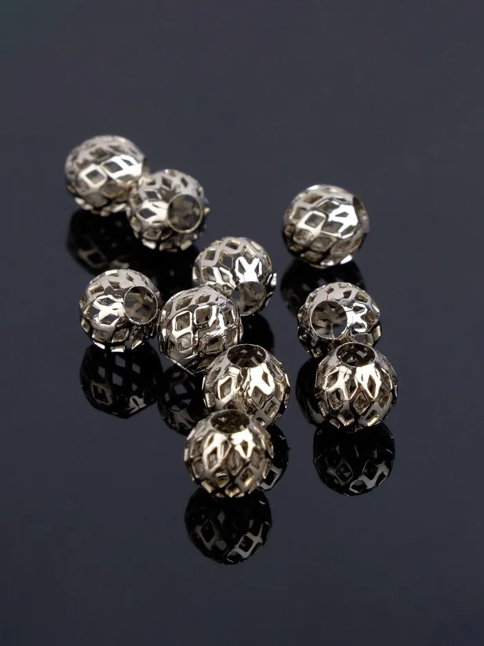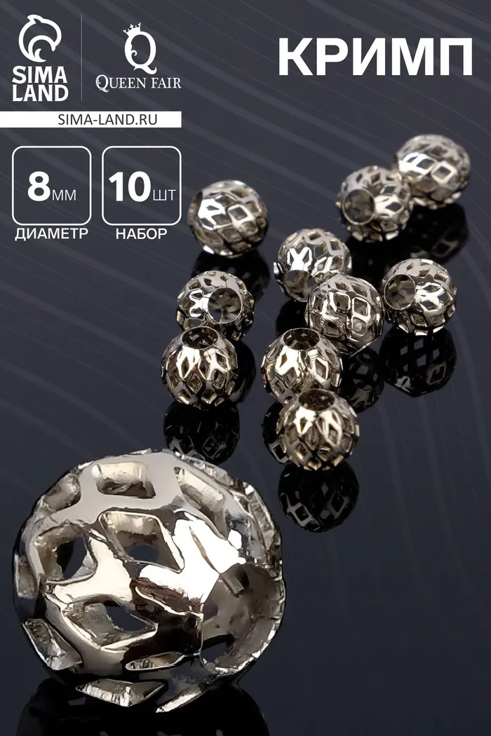Кримпы - зажимные бусины. Маленькие металлические бочонки или трубочки, фиксирующие положение бусины на тросике, леске или нитке. Также используется для закрепления концов. Зажимаются с помощью плоскогубцев или кримпера. Иногда для маскировки кримпов используют специальные шапочки для кримпов, после зажимания они похожи на маленькие металлические бусинки.