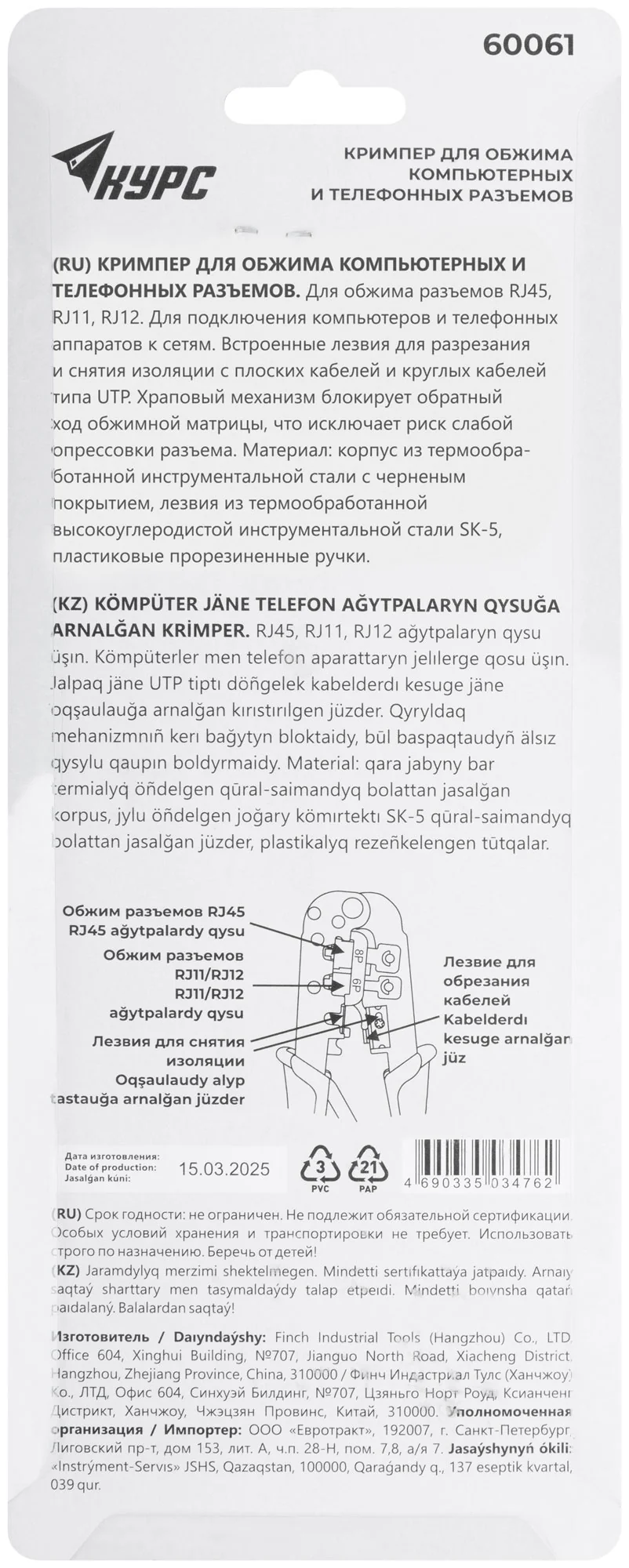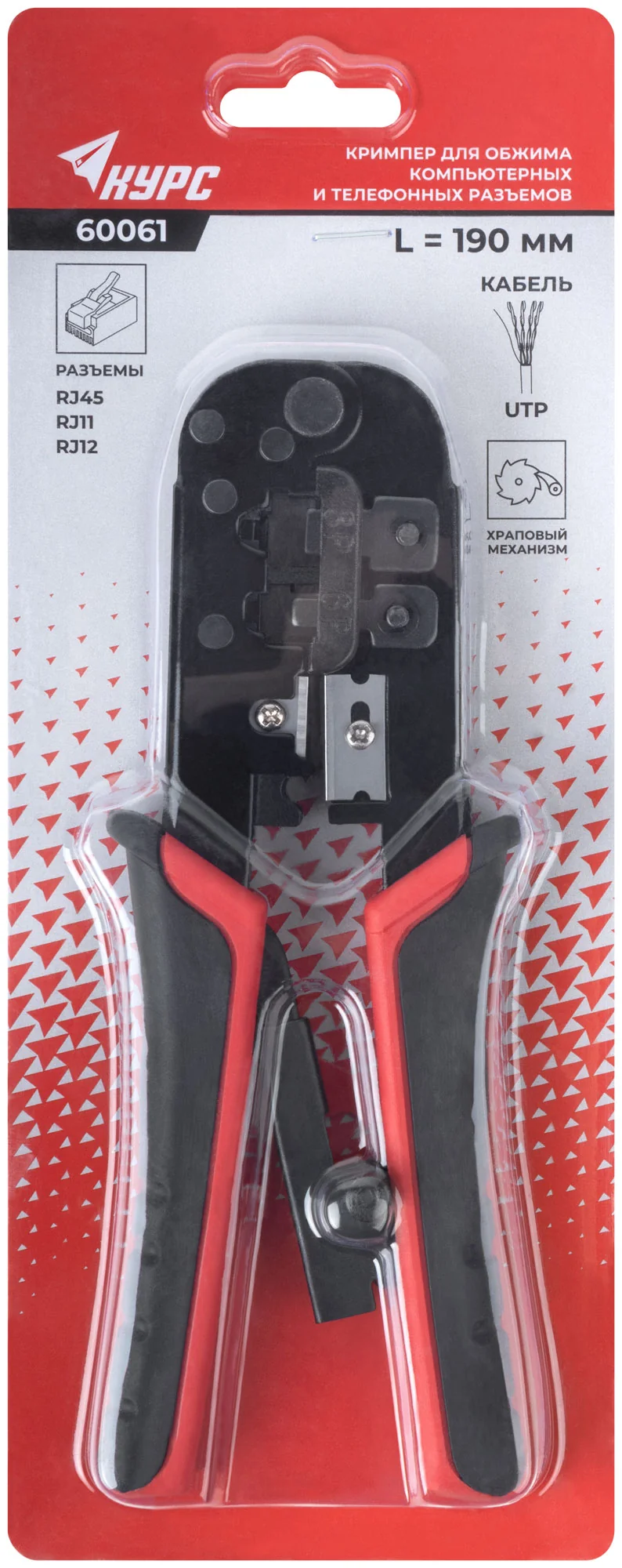 Выберите кримпер КУРС 60061 для профессиональной установки сетевых и телефонных разъемов с максимальной надежностью.