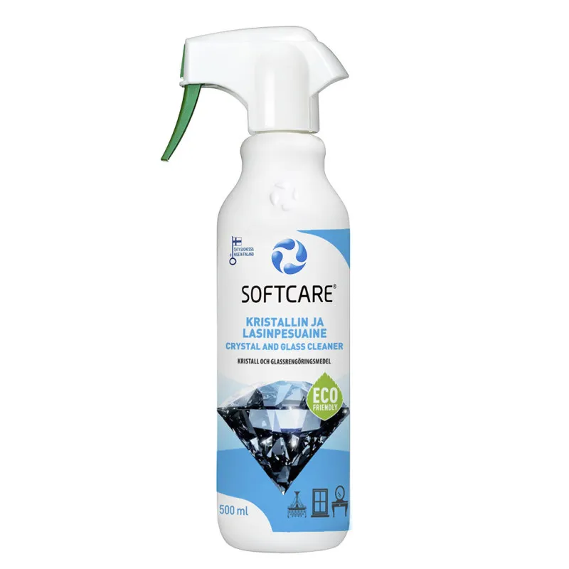 Готовое к использованию средство Softcare для чистки хрусталя и стекла разработано специально для чистки хрустальных люстр, зеркал, стекол и других твердых поверхностей. Моющее средство бережно очищает и не повреждает поверхности, оставляя их блестящими и чистыми. Все моющие средства Softcare экологически безопасны и легко разлагаются в природе. Объем упаковки средства для чистки хрусталя и стекла составляет 500 мл.