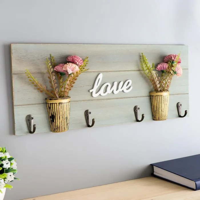 Крючки декоративные дерево "Букетики цветов в горшках" 16х40х3,5 см — Характеристики