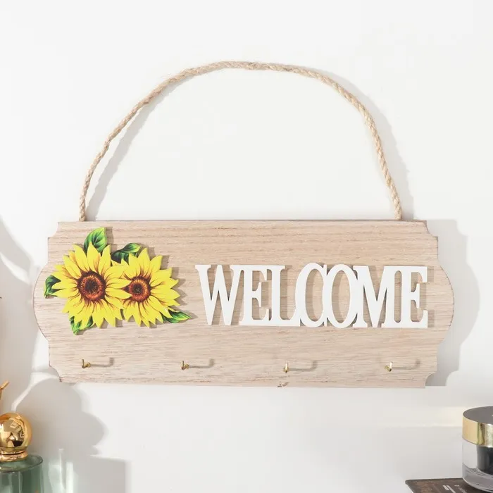 Крючки декоративные дерево "Добро пожаловать. Подсолнухи" 2,5х29,5х11,5 см — Характеристики