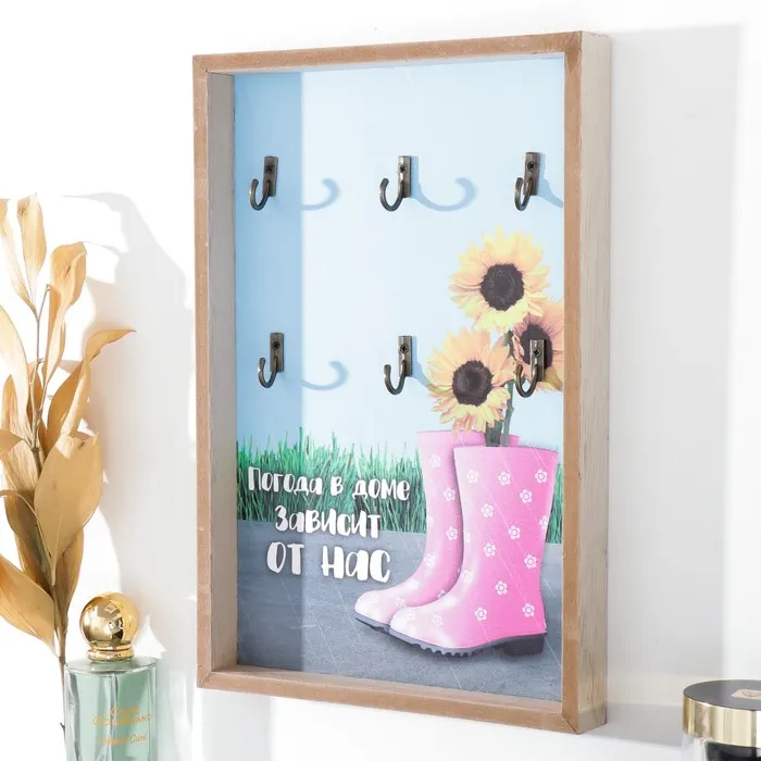 Крючки декоративные дерево "Подсолнухи в резиновых сапогах" 30х20х3 см — Характеристики