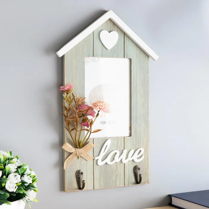 Крючки декоративные дерево с фоторамкой 10х15 см "Букетик цветов" 31х19,5х3,5 см — Характеристики