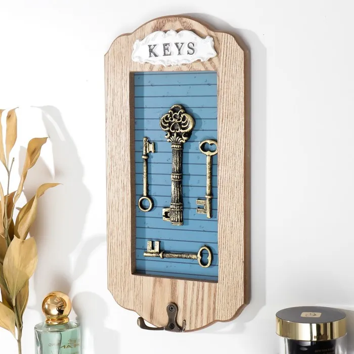 Крючки декоративные дерево "Зелёный куст в горшке" синий 29,5х4х15 см — Характеристики