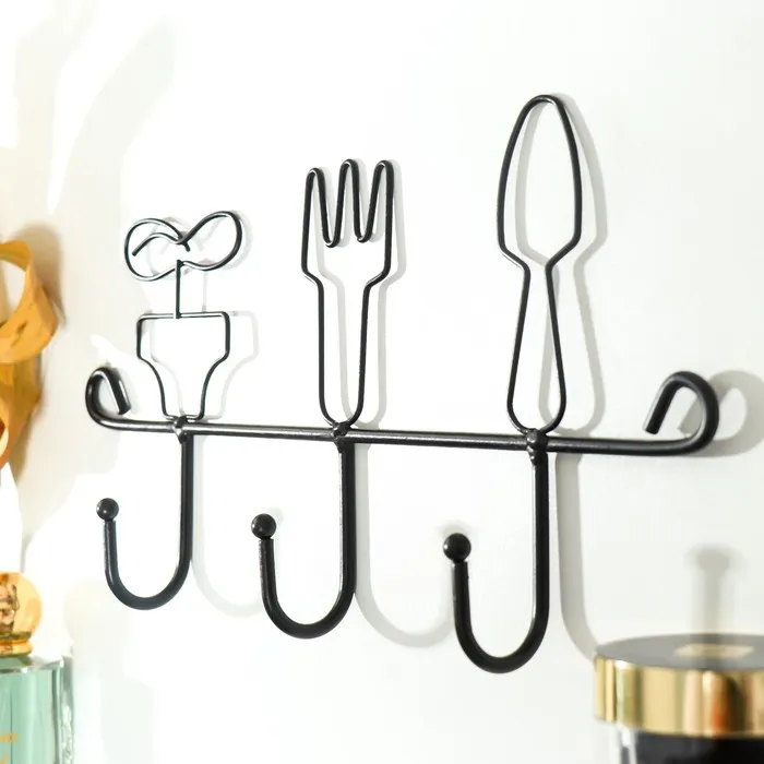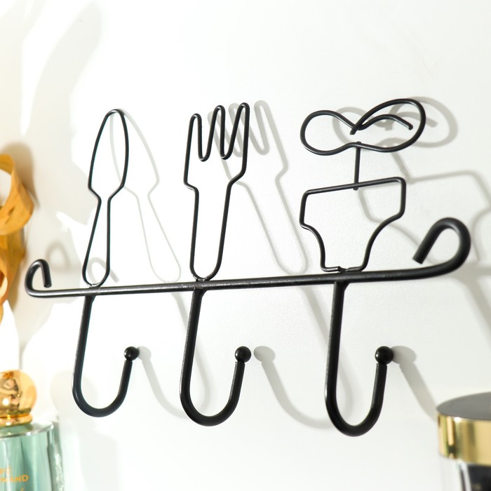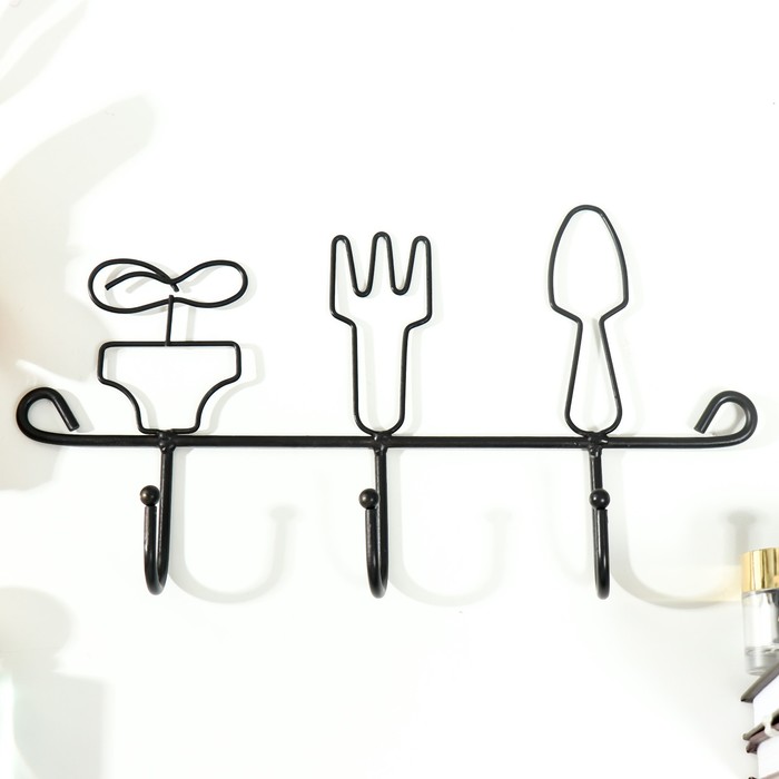 Крючки декоративные металл "Столовые приборы" чёрный 17,5х4х28,5 см
