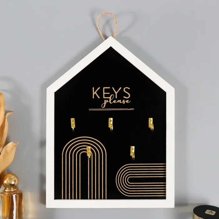 Настенные крючки декоративные «Ключи. Абстракция. Радуга», дерево, чёрная с золотом, 24×32 см