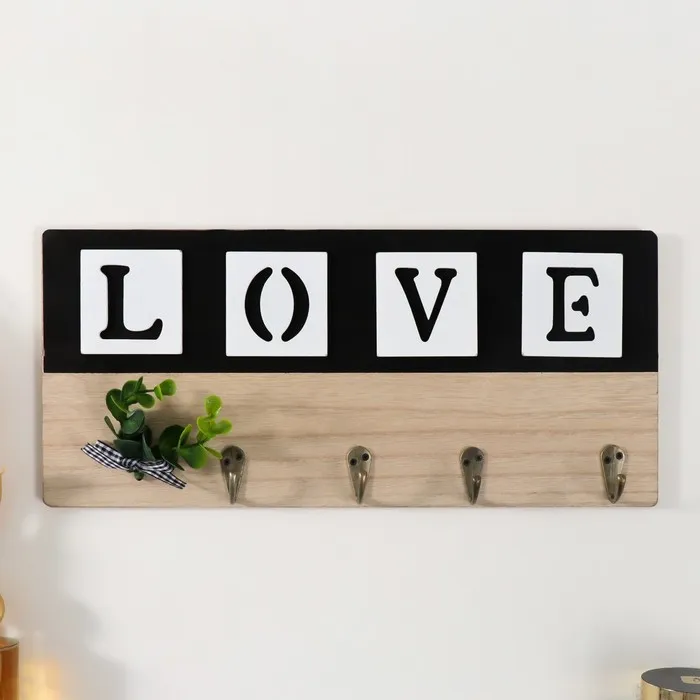 Настенные крючки декоративные «Любовь. Эвкалипт с бантиком», дерево, 35.7×16 см