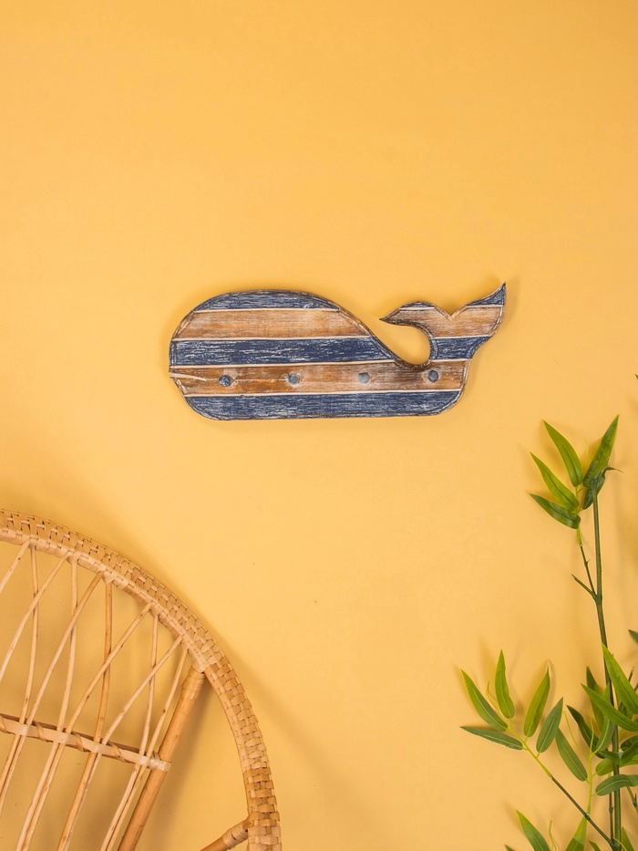 Вешалка «Кит», с 4 крючками, 44×2×18 см, дерево, синяя