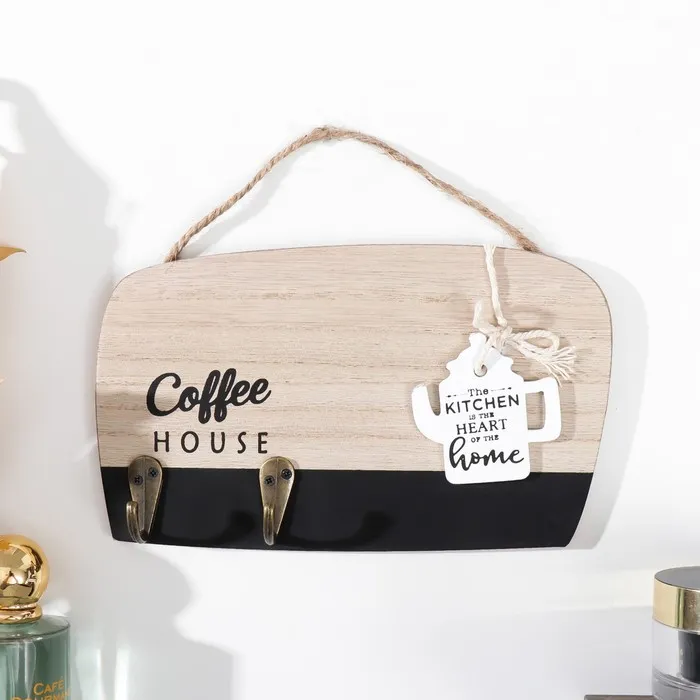 Крючки декоративные дерево "Кофейный домик с чайником" 3,5х20х12 см