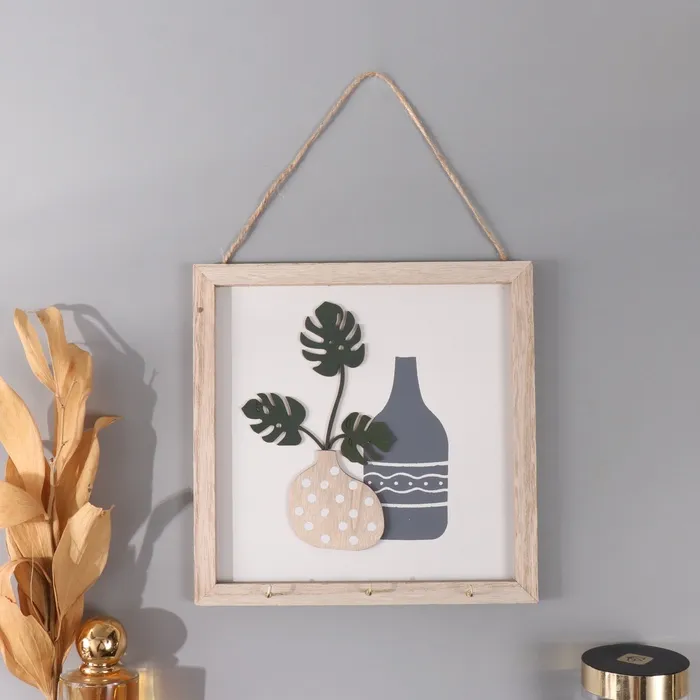 Настенные крючки декоративные «Ветки монстеры и две вазы», дерево, 2.5×20×20 см