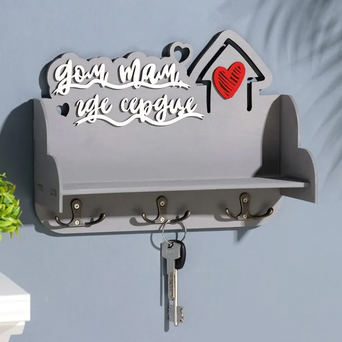 Ключница с полкой «Дом, там где», 28×23×7.5 см